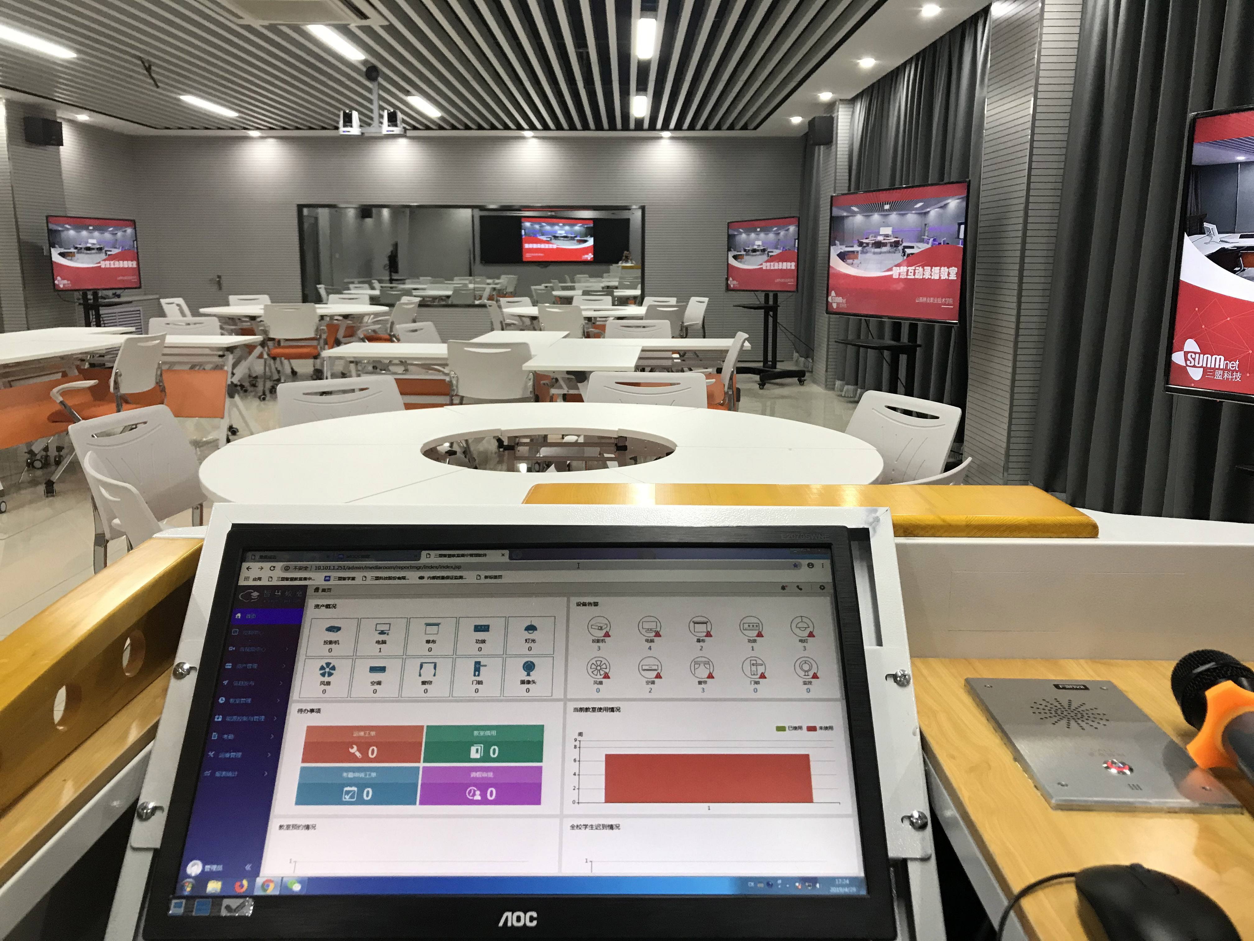 此次智慧互動錄播教室建設(shè),三盟科技以頂層設(shè)計為指導(dǎo)思想,整體規(guī)劃,采用云計算、物聯(lián)網(wǎng)等技術(shù),融合了基礎(chǔ)管控系統(tǒng)、物聯(lián)網(wǎng)環(huán)控系統(tǒng)、精品錄播互動系統(tǒng)、投顯系統(tǒng)及擴聲系統(tǒng)等,構(gòu)建智慧錄播互動的新教學(xué)環(huán)境。