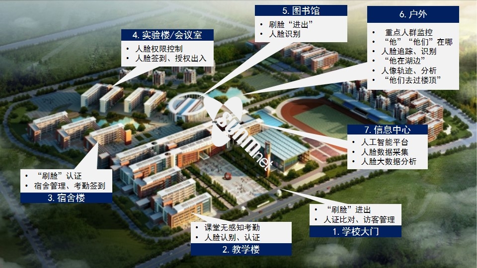 三盟科技智慧校園“一臉通”解決方案基于人臉識別技術(shù),圍繞校內(nèi)場所規(guī)范管理、校區(qū)安全管理、智能化教學(xué)業(yè)務(wù)場景,結(jié)合校園攝像頭、Wi-Fi、一卡通系統(tǒng)等數(shù)據(jù),通過部署校園人臉采集工具、人臉識別服務(wù)平臺,基于各場景的應(yīng)用模塊,解決照片采集、人臉識別、數(shù)據(jù)存檔分析等問題,實現(xiàn)校園安全可視化管理,及時預(yù)警危險信息,保障校園秩序,提升校園信息化建設(shè)水平。