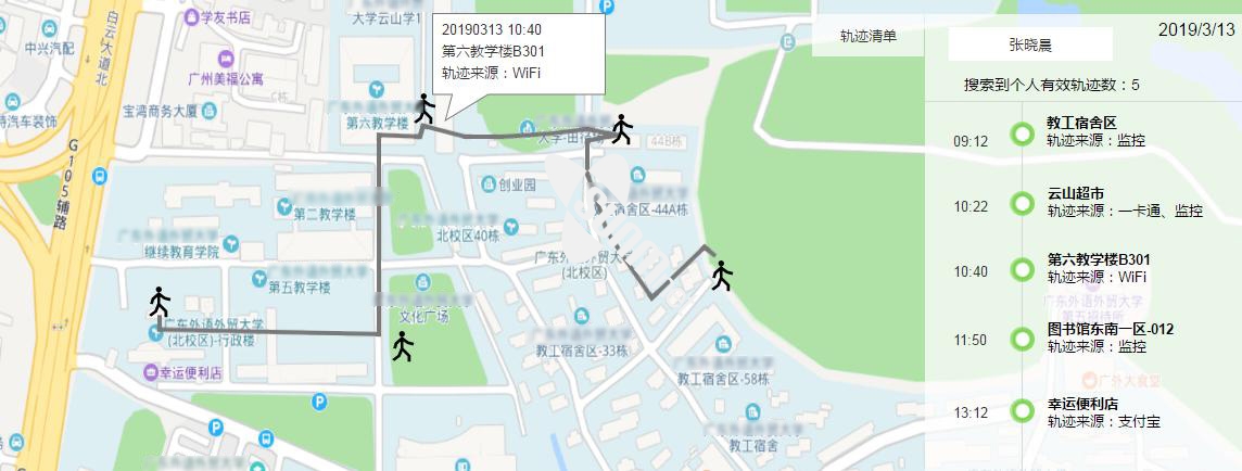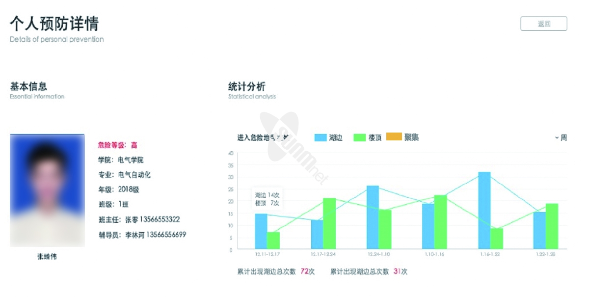 分析重點監(jiān)控學(xué)生的數(shù)據(jù),對比以往軌跡數(shù)據(jù),分析學(xué)生危險行為是否有所改善,輔助監(jiān)管人員采取應(yīng)對措施。