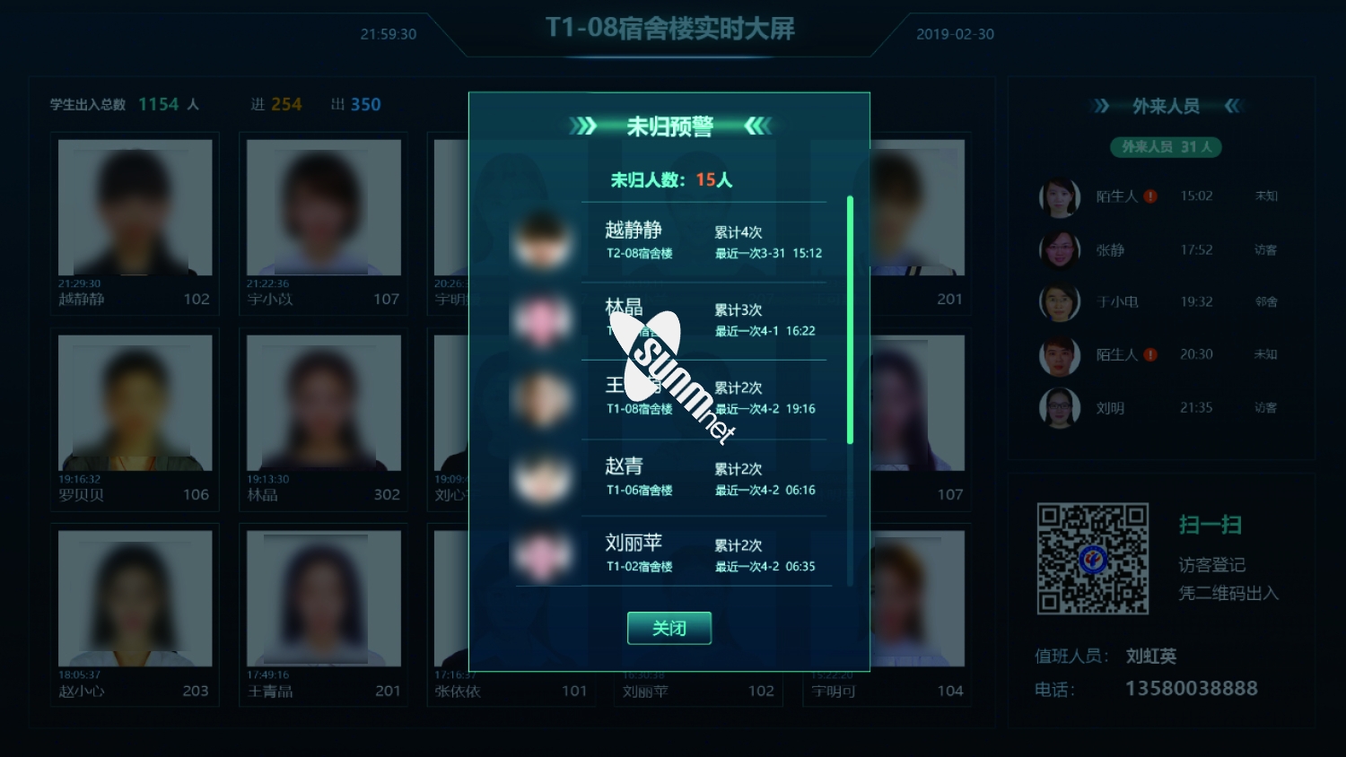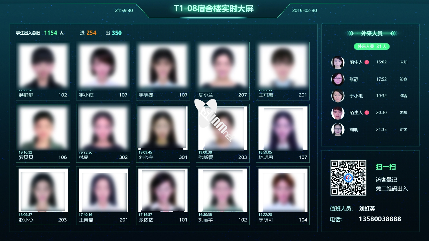 相較于單純地用于“解鎖”,智慧校園“一臉通”通過大數(shù)據(jù)分析技術(shù),分析學(xué)生夜歸、未歸數(shù)據(jù),及時預(yù)警,防患于未然,通過考勤大屏、“刷臉”訪客管理、未歸預(yù)警等,簡單、實時把控宿舍整體狀態(tài)。