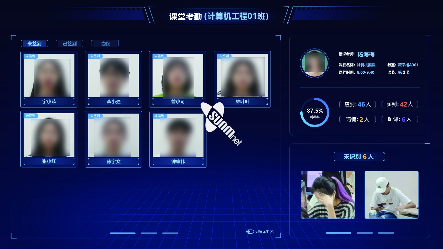 課堂無感知考勤解決方案,人臉識別服務(wù)平臺提前采集學(xué)生的人臉庫,系統(tǒng)可根據(jù)上課的考勤時間進(jìn)行設(shè)置,在正常上課開始前,通過軟件平臺的課堂無感考勤模塊啟動抓拍、識別并形成考勤結(jié)果,系統(tǒng)自動將當(dāng)前課堂的學(xué)生出勤情況進(jìn)行統(tǒng)計,以報表或圖形化的界面顯示,使學(xué)生出勤情況一目了然,并且人臉識別能杜絕頂替出勤情況的發(fā)生,不占用課堂教學(xué)時間,全流程自動監(jiān)控,逃課、遲到、早退系統(tǒng)自動記錄,顯著提升學(xué)生出勤率,提高教學(xué)質(zhì)量。
