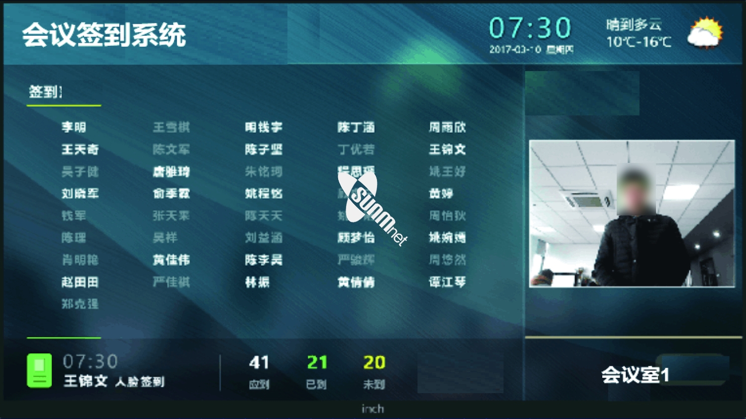 高校經(jīng)常有會議、培訓(xùn)等活動,會議人臉簽到提高了效率,不需要通過手簽或者微信簽到。同時人臉簽到情況會自動實時統(tǒng)計、匯總,提升用戶體驗。