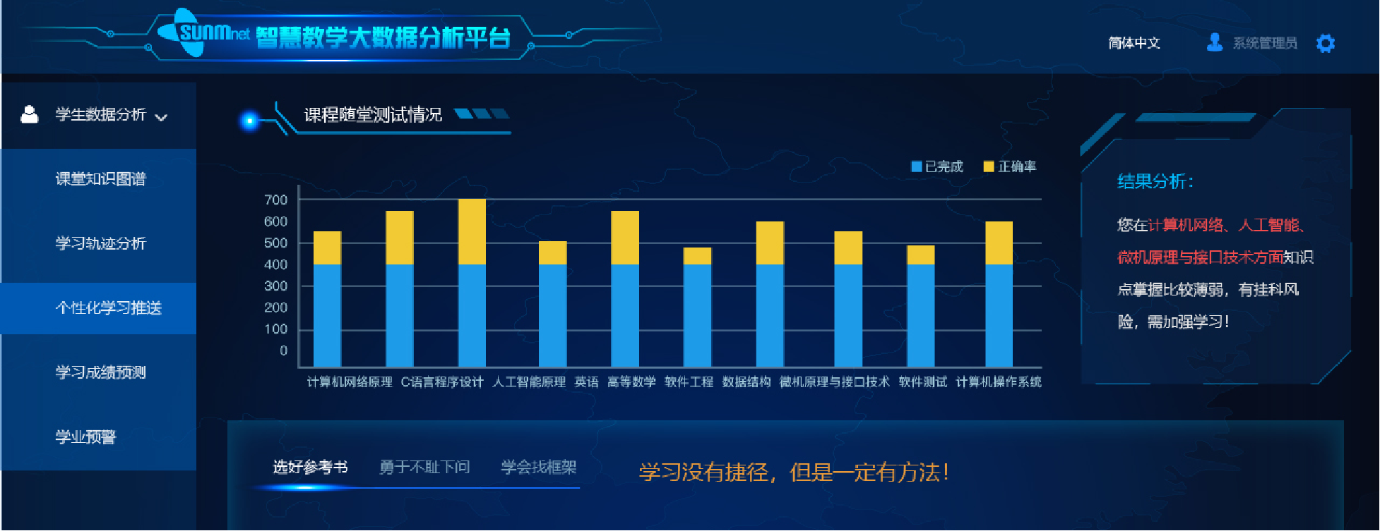 學個性化推薦,基于教學數(shù)據(jù),對學生教學內(nèi)容進行而個性化推薦,實現(xiàn)因材施教,激發(fā)學生的學習興趣。