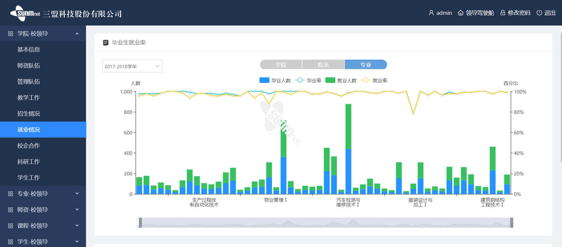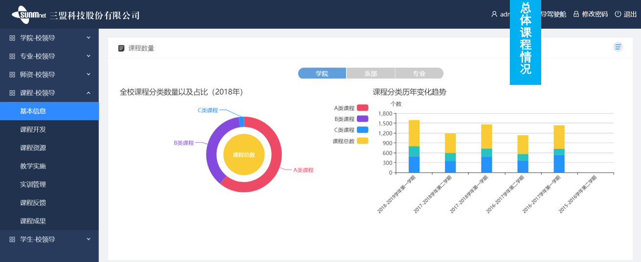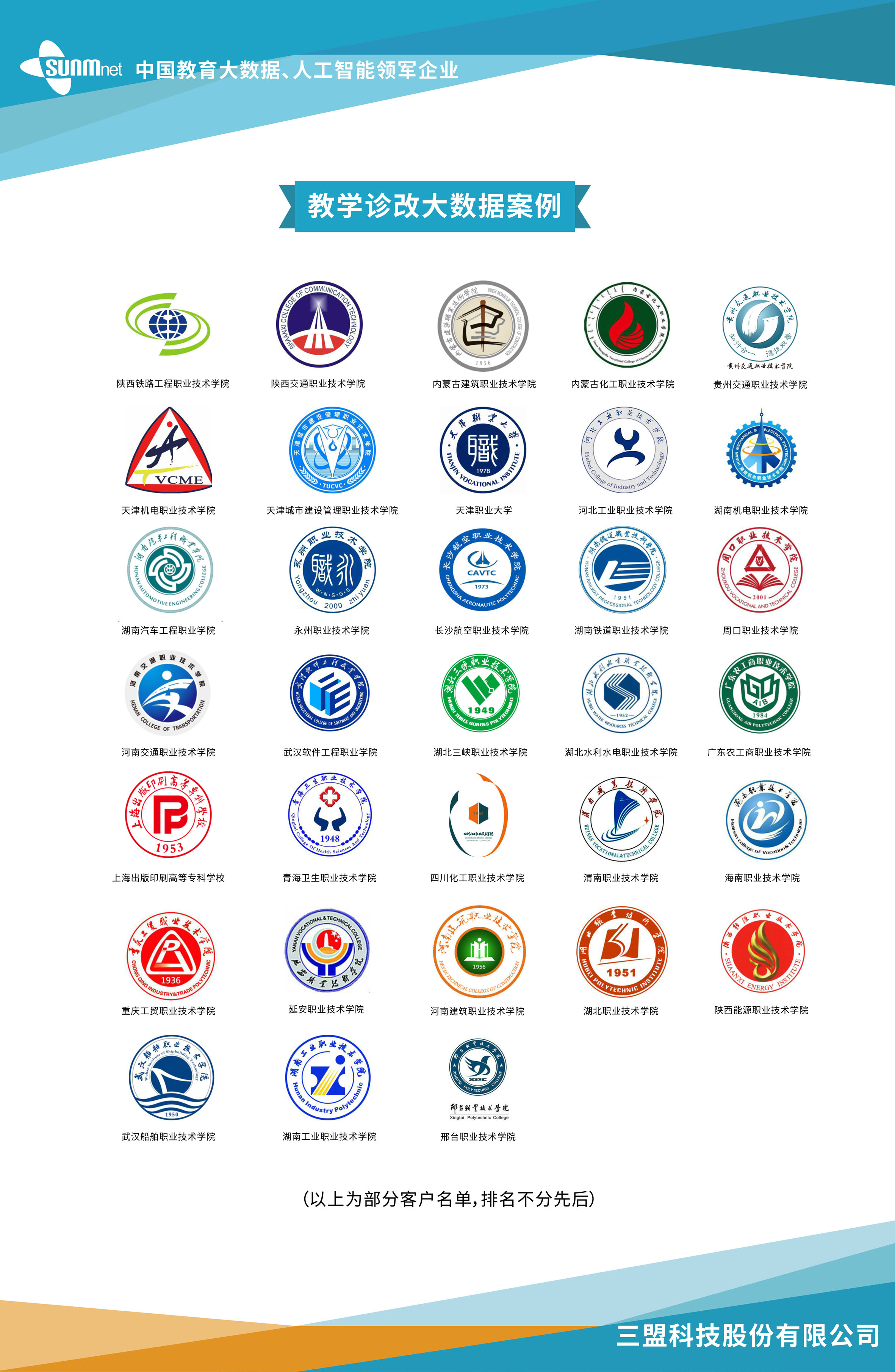 三盟科技通過幾年的不懈努力,現(xiàn)在實際診改落地案例達36所,其中包括5所教育部確定的27所高職診改國家試點院校,陜西鐵路工程職業(yè)技術(shù)學(xué)院和陜西交通職業(yè)技術(shù)學(xué)院兩所院校目前已順利完成國家復(fù)核;另外,三盟參與建設(shè)的9所院校也順利完成省級復(fù)核。通過豐富的實施經(jīng)驗,三盟科技已經(jīng)建成了一套科學(xué)、專業(yè)、高效的教學(xué)診改大數(shù)據(jù)平臺。