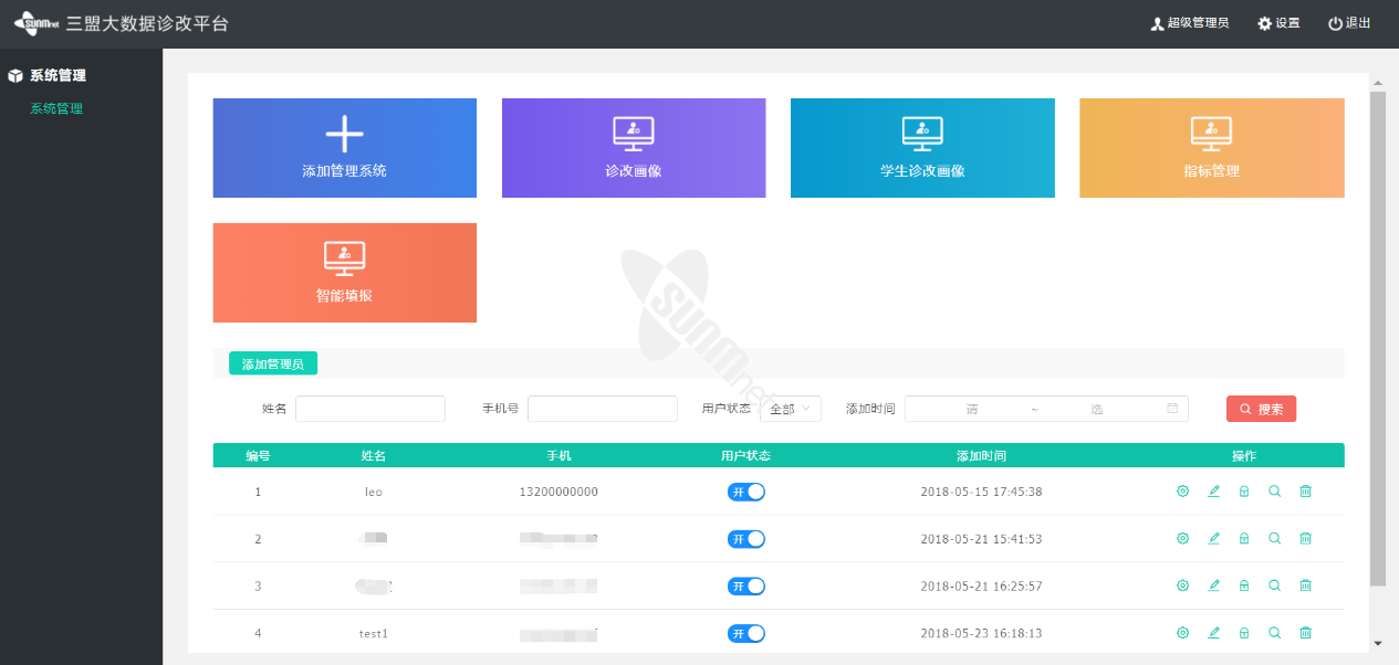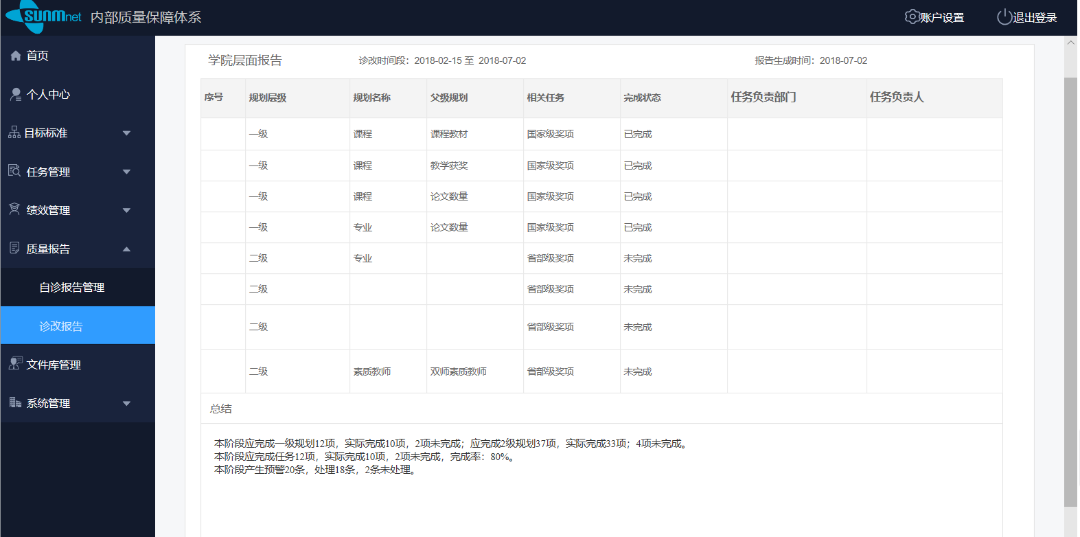 后臺管理系統(tǒng)全面、細化,可根據(jù)實際,了解診改情況。亦可通過超級管理員、管理員兩個不同的角色,細化管理系統(tǒng)權(quán)限。