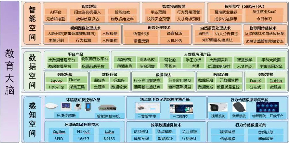 三盟科技“教育大腦”戰(zhàn)略,全方位展示了三盟科技自主研發(fā)的全系列智慧教育產(chǎn)品,在產(chǎn)品和技術(shù)上通過感知空間、數(shù)據(jù)空間、智能空間等三個空間的布局,實(shí)現(xiàn)從數(shù)據(jù)源采集到智能應(yīng)用的全覆蓋,為教育單位提供成熟的智慧教育整體解決方案。